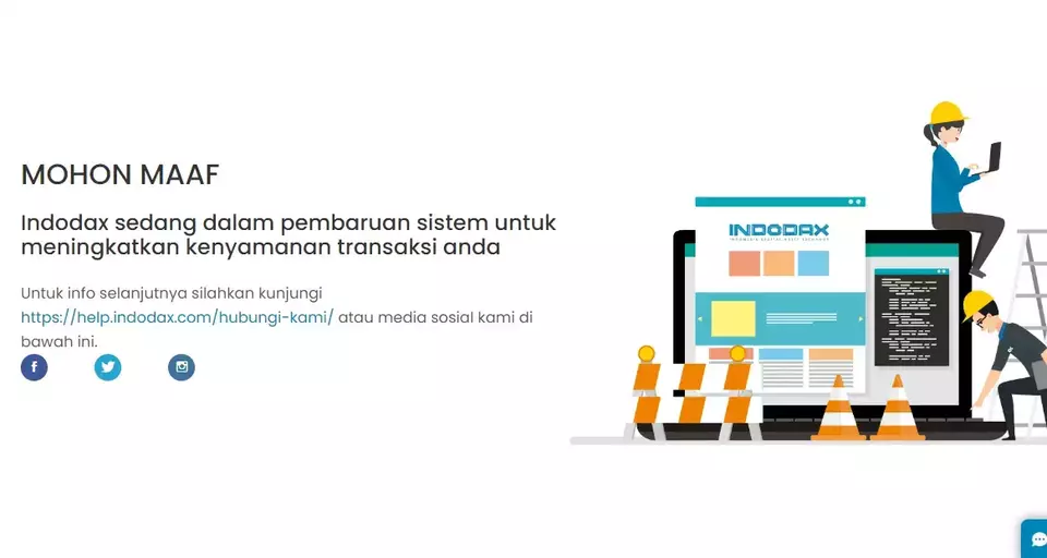 Dalam situs web Indodax, hanya tertulis informasi permohonan maaf lantaran situs web Indodax sedang dalam pembaruan sistem.