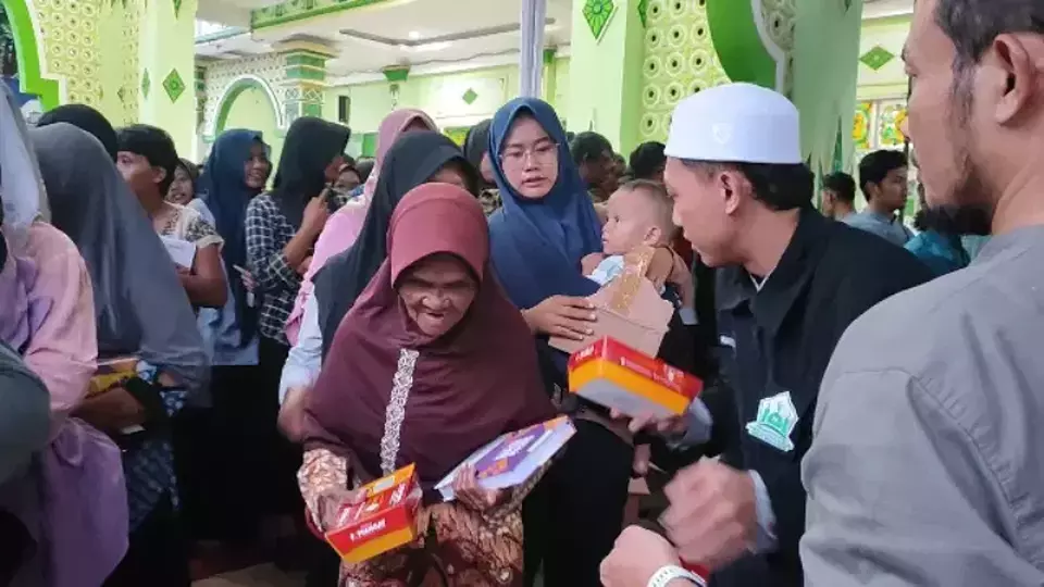 Klaten, Beritasatu.com — Ribuan warga memadati kompleks Masjid Raya Klaten, Jawa Tengah, saat pembagian takjil berupa ayam goreng pada momen ngabuburit Ramadan. Antusiasme masyarakat begitu tinggi hingga terjadi antrean panjang dan saling berdesakan demi mendapatkan menu berbuka puasa gratis tersebut.