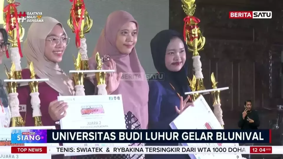 Sabtu, 14 Februari 2026 | 16:30 WIBUniversitas Budi Luhur menggelar Budi Luhur University Festival (Blunival) di Grha Mahardika Bujana, UBL, Jakarta Selatan, pada 12 hingga 13 Februari 2026. Acara yang mengangkat tema Voice of Youth ini menghadirkan panggung kolaboratif yang merangkum lomba antar SMA lintas bidang, festival, dan konser musik guna merangkul generasi muda.