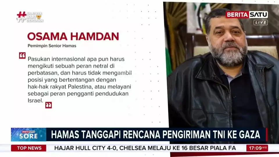 Sabtu, 14 Februari 2026 | 22:30 WIBKelompok milisi Hamas merespon rencana Indonesia mengirimkan ribuan tentara sebagai bagian dari Pasukan Stabilisasi Internasional (ISF) di Jalur Gaza.
