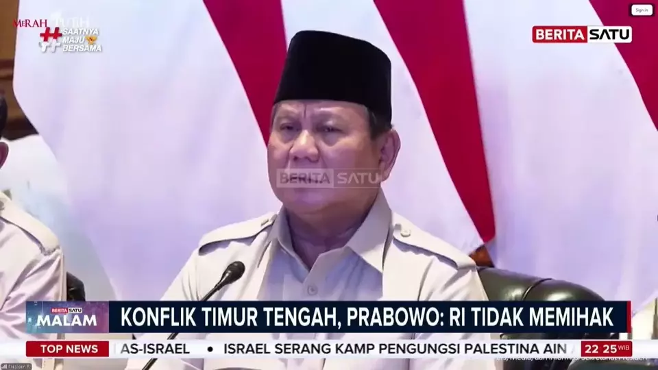 Selasa, 10 Maret 2026 | 05:00 WIBPresiden Prabowo Subianto menegaskan Indonesia saat ini berada di jalur yang tepat dalam menyikapi konflik di Timur Tengah. Menurut Prabowo, sikap Indonesia tetap berpegang teguh pada prinsip politik luar negeri bebas aktif, non-blok, dan tidak memihak kepada pihak mana pun dalam konflik internasional.