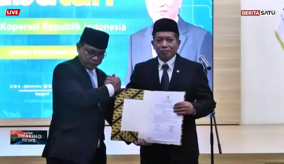 Jakarta, Beritasatu.com - Proses serah terima jabatan menteri koperasi resmi berlangsung pada Selasa (9/9/2025) di kantor Kemenkop, Jakarta. Budi Arie Setiadi menyerahkan tongkat estafet kepemimpinan Kementerian Koperasi (Kemenkop) kepada Ferry Juliantono setelah Presiden Prabowo Subianto melakukan reshuffle kabinet sehari sebelumnya, Senin (8/9/2025).
