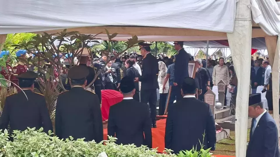 Prosesi pemakaman dilakukan dengan upacara militer dan dipimpin oleh Presiden Prabowo Subianto sebagai inspektur upacara.