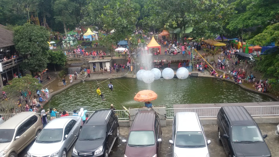 Di tempat ini, pengunjung juga bisa bermain berbagai hal, seperti bola air, flying fox, berkuda, dan buggy kart. Sayangnya, hujan deras membuat permainan outdoor terhenti. Untungnya, ada pertunjukan musik yang cukup menghibur. Pengunjung pun memilih belanja berbagai hal.