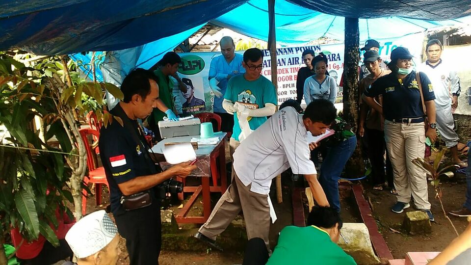 Suasana haru menyelimuti pembongkaran makam. Didampingi kepolisian dan Tim Forensik RSUD Ciawi, pembongkaran dilakukan sekitar dua jam yang disaksikan pihak keluarga. Warga yang berniat melihat prosesi dilarang mendekat. Hingga proses pembongkaran selesai, pihak polisi dan tim forensik enggan memberikan keterangan karena proses indentifikasi belum selesai.