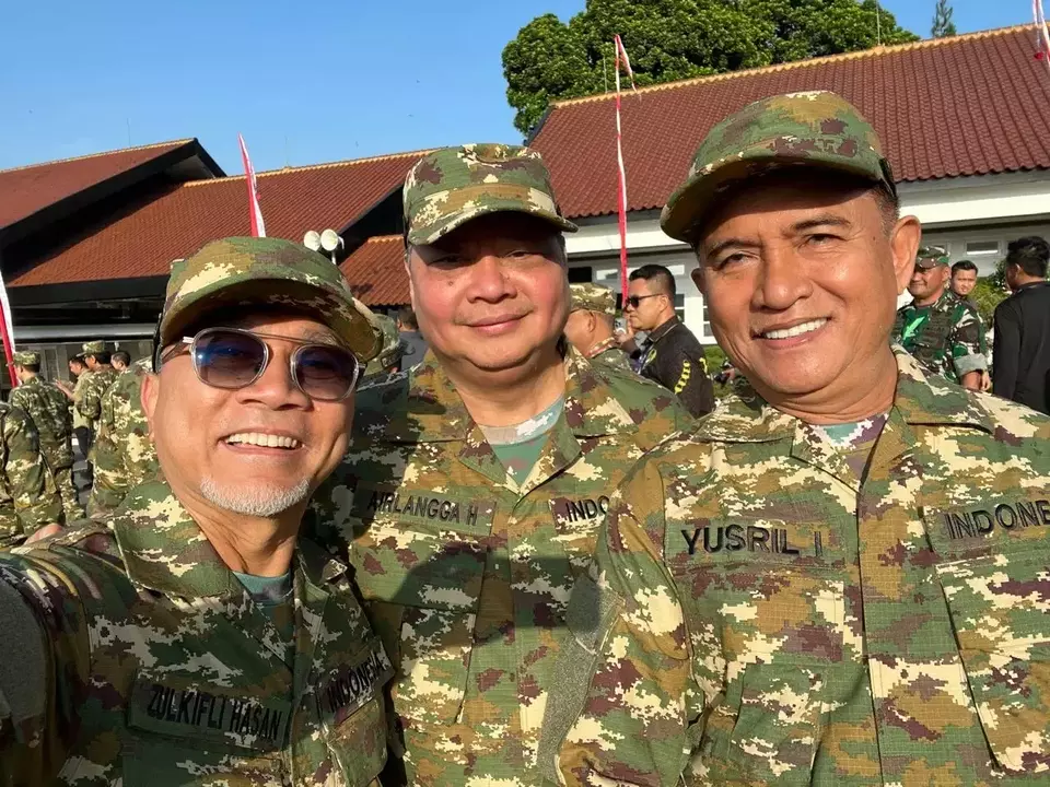 Raja menambahkan, baik Prabowo dan seluruh jajaran menteri, wakil menteri, hingga kepala lembaga mengenakan pakaian komponen cadangan (komcad) yang bercorak loreng.