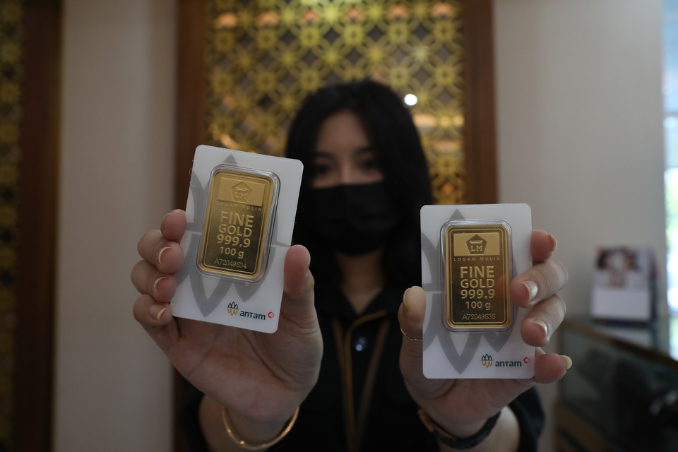 Harga emas batangan PT Aneka Tambang (Persero) Tbk terpantau dibanderol Rp 978.000 per gram pada hari ini, Kamis, 28 Juli 2022. Besaran harga tersebut melesat Rp 12.000 per gram dibandingkan dengan harga sebelumnya Rp 966.000 per gram pada Rabu, 27 Juli 2022. Mengutip laman Logam Mulia, harga buyback juga naik signifikan Rp 11.000 per gram, berada di level Rp 840.000 per gram. FOTO : BeritaSatu Photo/Ruht Semiono