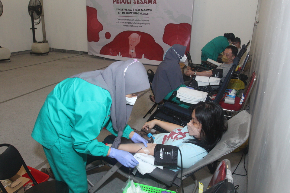 Dalam rangka menyambut Hari Kemerdekaan Republik Indonesia Ke-77, TMD Lippo Village menggelar Donor Darah yang diikuti oleh para warga, Lippo Village, Rabu 17 Agustus 2022. Aksi Donor Darah ini sebagai wujud kepedulian sesama dalam kemanusiaan. FOTO: BeritaSatu Photo/Emral Firdiansyah