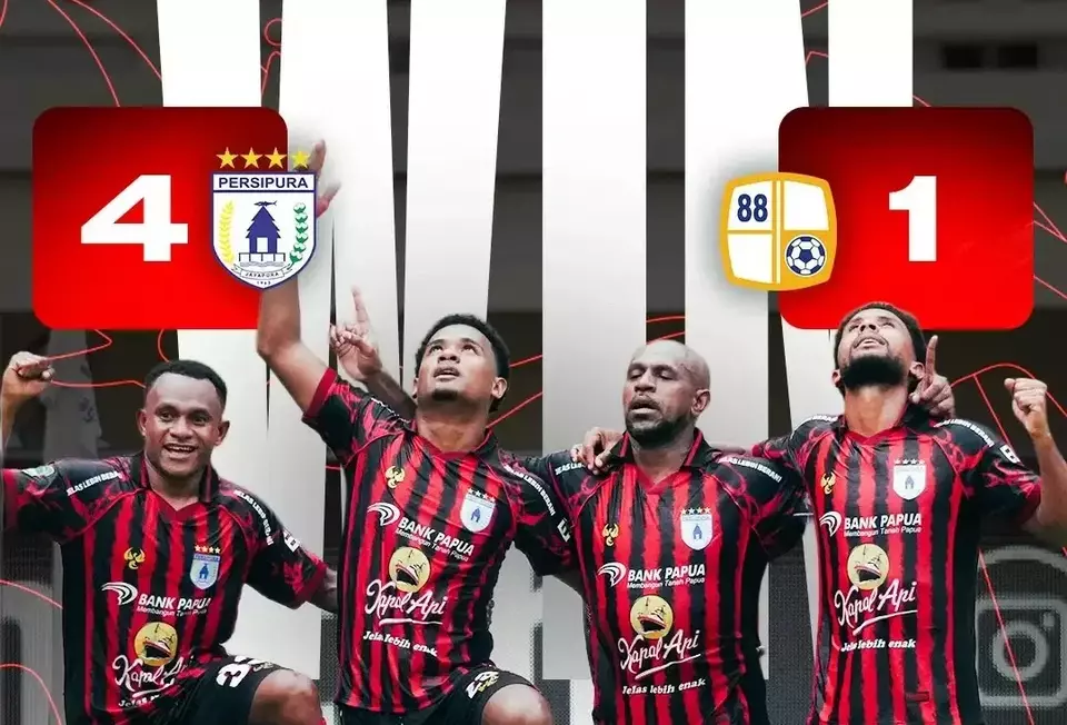 Jayapura, Beritasatu.com - Persipura Jayapura sukses memetik kemenangan meyakinkan saat menjamu Barito Putera dalam lanjutan kompetisi Grup B Championship. Bermain di Stadion Lukas Enembe, Minggu (15/2/2026), tim berjuluk Mutiara Hitam menang telak dengan skor 4-1.