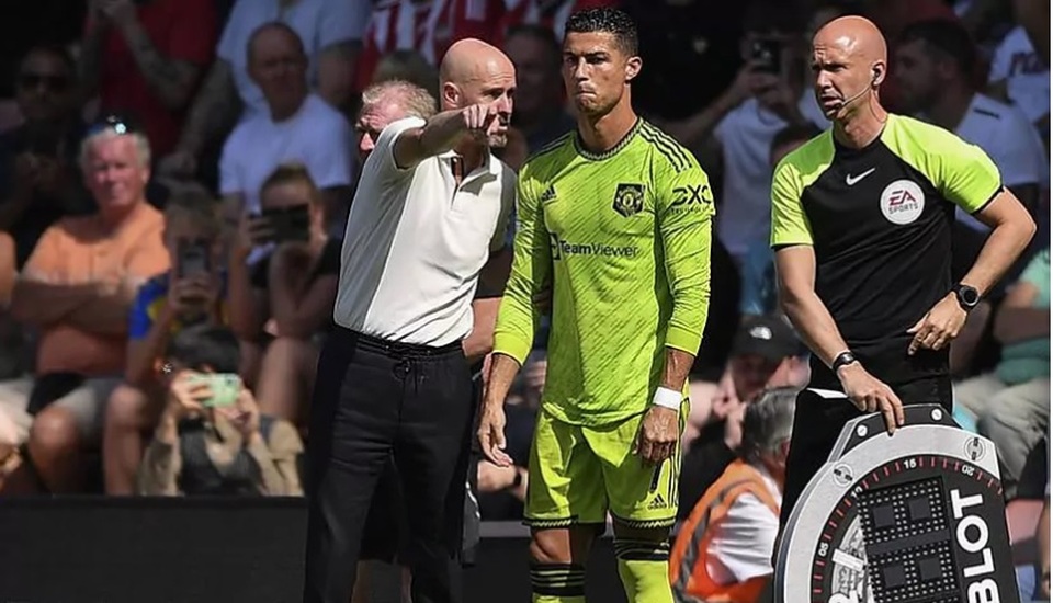 Cristiano "dihukum" setelah menolak untuk turun sebagai pemain pengganti saat melawan Tottenham Hotspur. Dia meninggalkan bangku cadangan saat pertandingan belum selesai dalam partai di Old Trafford pada hari Rabu.